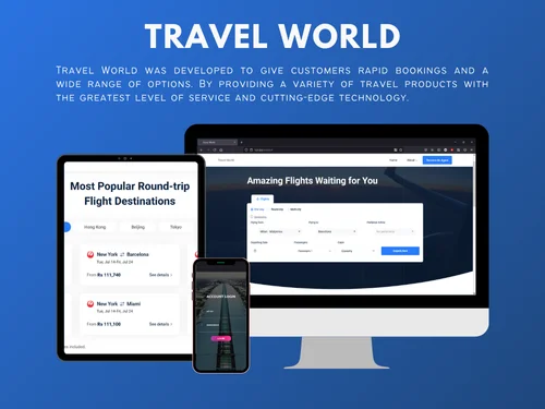 Travel World was developed to give customers rapid bookings and a wide range of options. By providing a variety of travel products with the greatest level of service and cutting-edge technology.